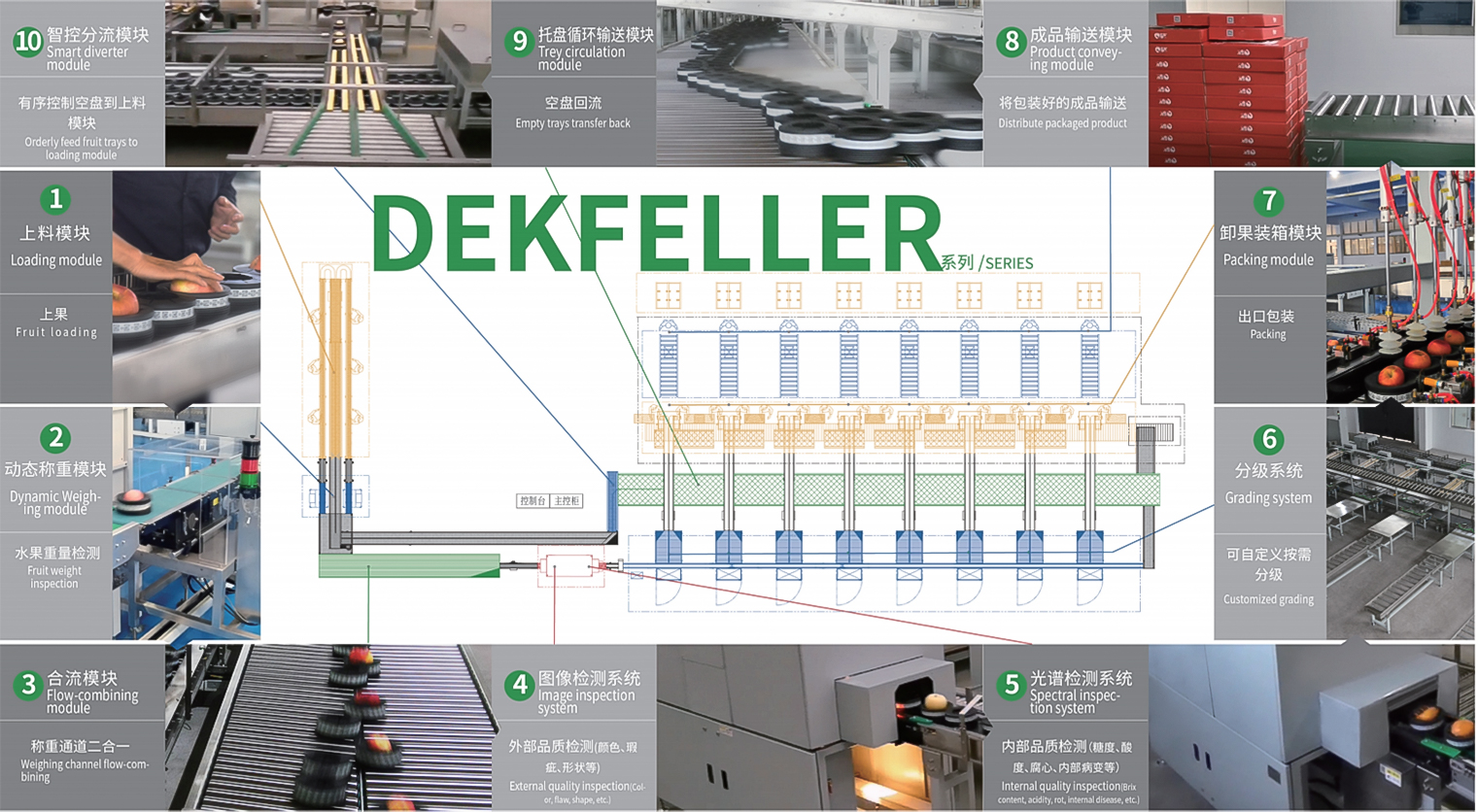 DFL無損分選設備是國內針對果品脆弱型水果分選研發(fā)的裝備,根據(jù)水果生理特征設計,達到分選過程無損傷的品質分選。區(qū)別于傳統(tǒng)的分選方式,水果在設備上滾動,水果與設備、水果與水果都會產(chǎn)生大量的碰撞與擦傷。DFL設備則能完全避免這部分損耗,水果獨立于特制的柔性果托上,全程都處于靜止狀態(tài),從而無損耗。DFL為您的果品保駕護航,降低損耗,提大效率,保障品質。